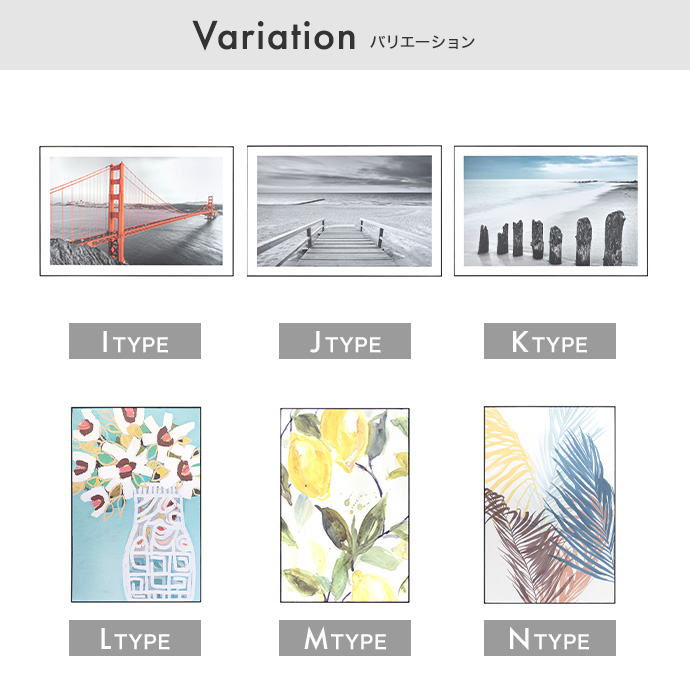 空間に映える大きめサイズのアートパネルが登場しました!フレームと壁掛け金具付きで、届いたその日からすぐに飾っていただけます♪また前面には透明アクリル板を採用。ほこりや汚れからキャンバスを守ってくれるので、長くきれいな状態を楽しめます!お部屋の雰囲気を手軽に変えたい方にぴったりのアートパネル。16種類からお気に入りのデザインを見つけて、自分らしい空間作りをお楽しみください♪