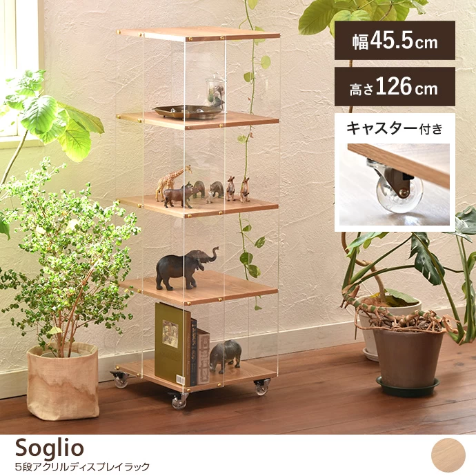 幅45.5 ディスプレイラック ラック ディスプレイ 5段 収納 シェルフ おしゃれ おすすめ 安い キャスター付き 透明 軽量 見せる収納 簡単組立 スリム コンパクト コレクション フィギュア 推し活 植物 飾り棚 本棚 玄関
