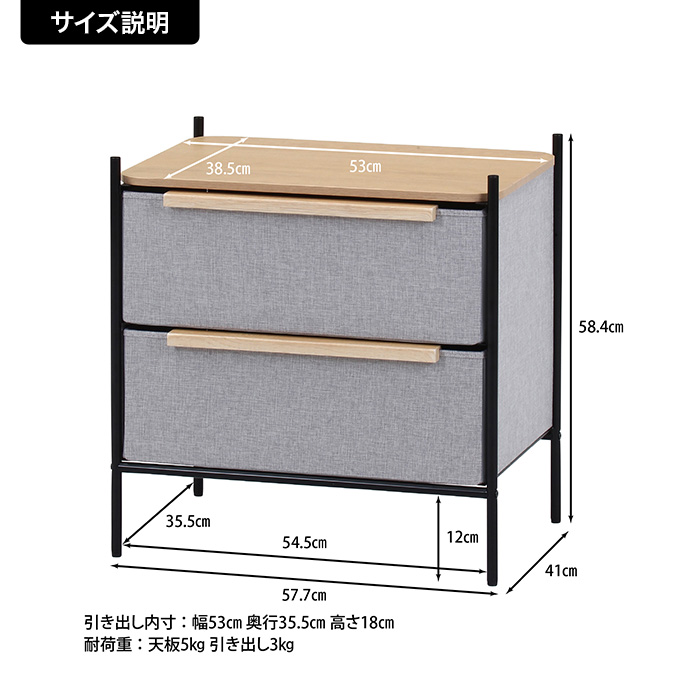 • 【幅57.7cm】2段ファブリックチェスト
