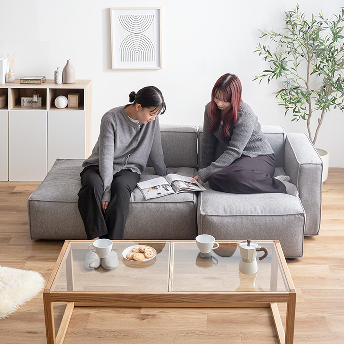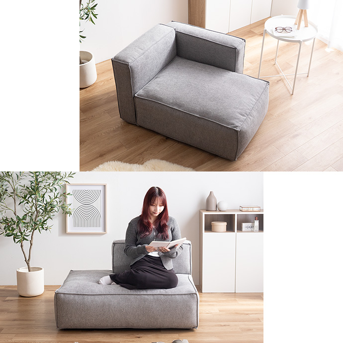 足を伸ばしてゆったりくつろげるローソファ。直線的でシンプルなフォルムながらも広々座面とふかふかな座り心地で、のびのびとした快適さを実現。また、座面高を低く抑えた低重心設計で、お部屋を落ち着いた雰囲気に。セットでのご利用はもちろん、単品での使い方もお楽しみいただけます。
