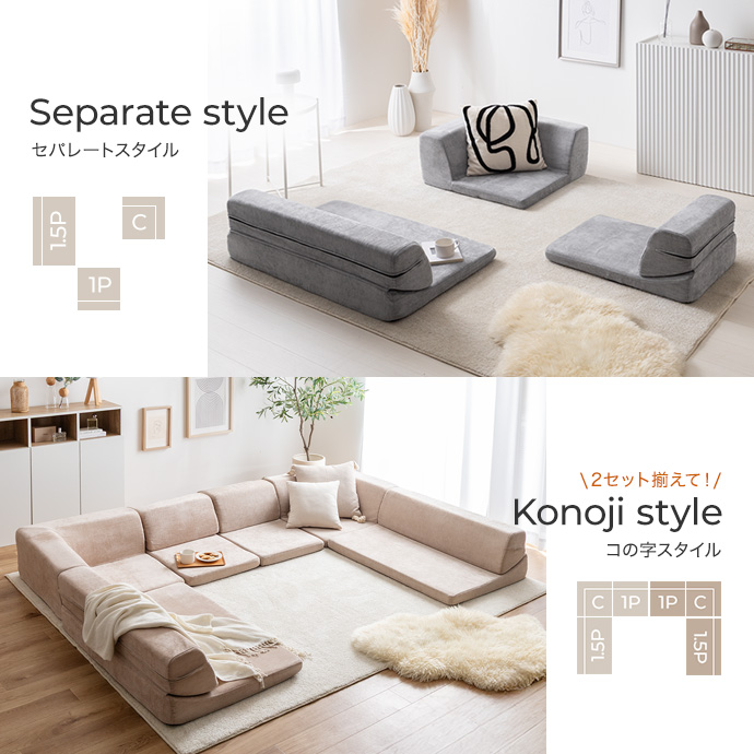 暮らしに馴染んでくつろげる、組替え自由のフロアソファ
