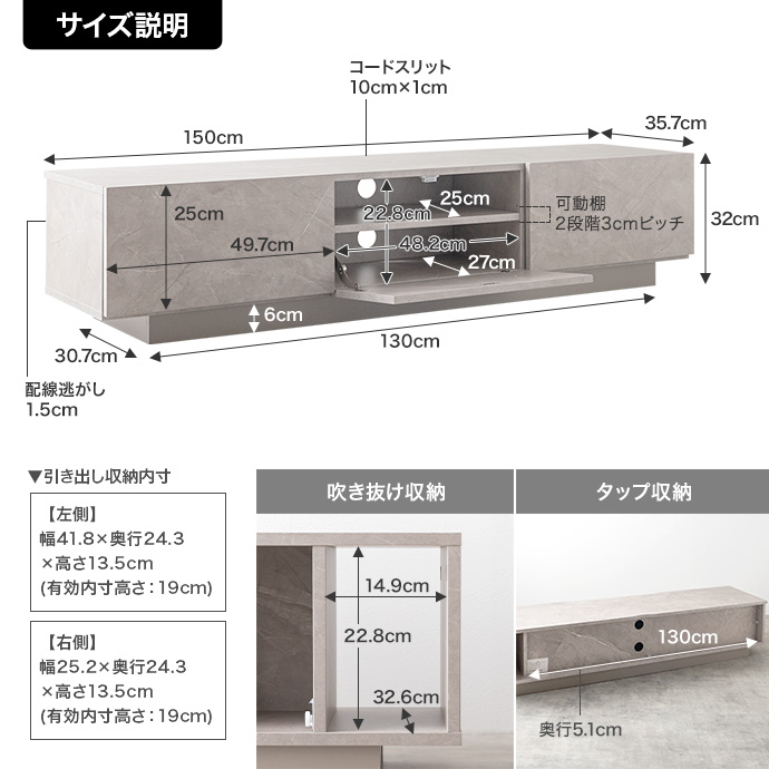 | 商品名 | 【幅150cm】Sincere 引き出し付きテレビ台 |