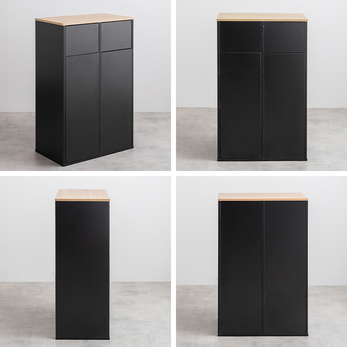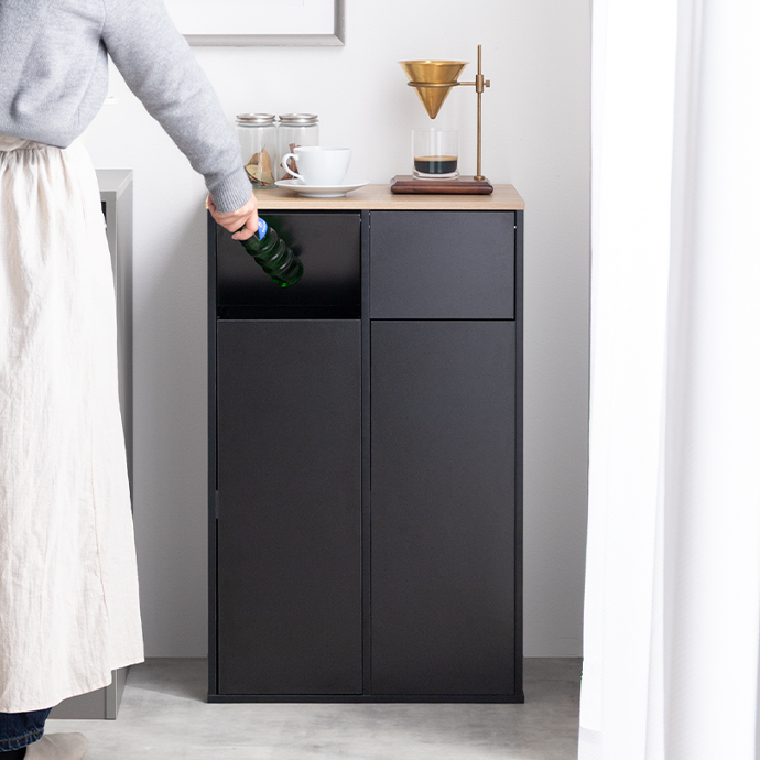 ゴミ箱とは思えない美しいデザイン。温もりのある木目調天板とシンプルなモノトーンカラーが、インテリアにスッと馴染みます。ナチュラルモダンな雰囲気を演出しながら、空間に洗練さをプラスすることが可能です。