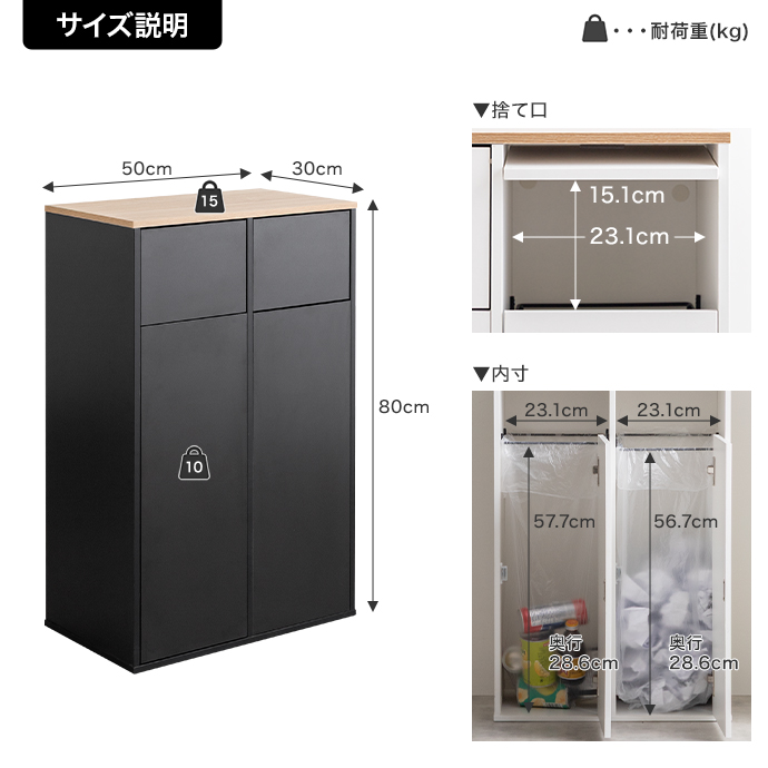 | 商品名 | 【幅50cm】2連式ゴミ箱 |