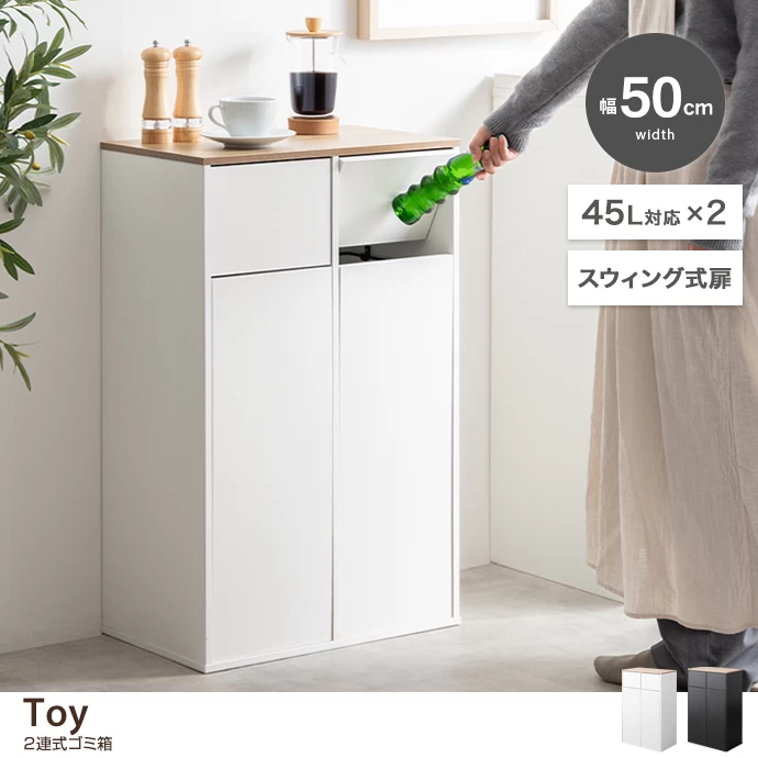 大人気Toyシリーズから2連式ゴミ箱が登場しました!スウィング式の扉はマジックテープで固定できるので、開けたまま作業したいときにも便利。ゴミが多いときもスムーズに捨てられます!さらに、広々とした天板にはトースターやケトルなどのキッチン家電を置くことも可能。分別のしやすさと利便性を兼ね備えた、頼れるゴミ箱です♪