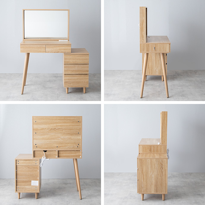 片側をチェスト型にしたアシンメトリーなドレッサー。装飾を抑えたミニマルなフォルムが空間にすっと溶け込み、置くだけで程よい抜け感と個性をプラスします。左右で異なる脚部デザインがさりげないアクセントになり、海外インテリアのような洗練感を身支度スペースに取り入れられます。