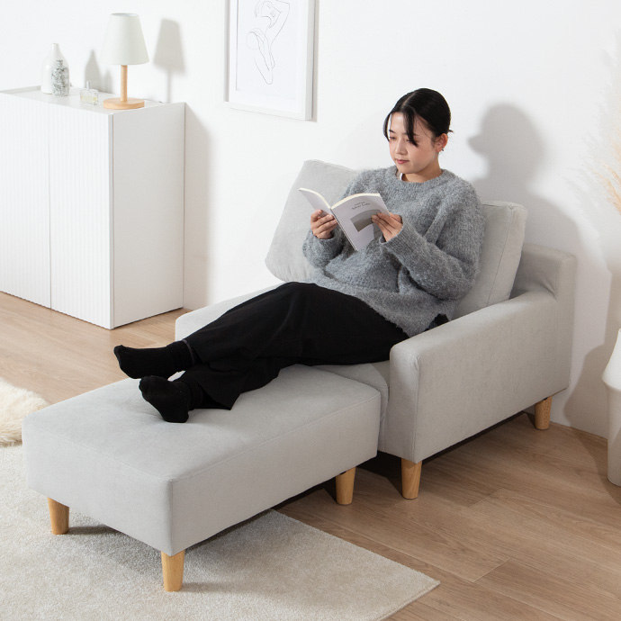 すっきりと空間に馴染むコンパクトなカウチソファ。一人暮らしやスペースが限られたお部屋にも取り入れやすく、初めてのソファーとしても選びやすいサイズ感に。さらにオットマンを組み替えれば、シーンに合わせたレイアウトが可能。自分だけのくつろぎの空間をお作りいただけます。