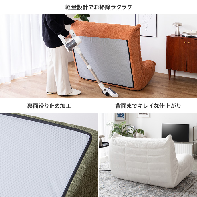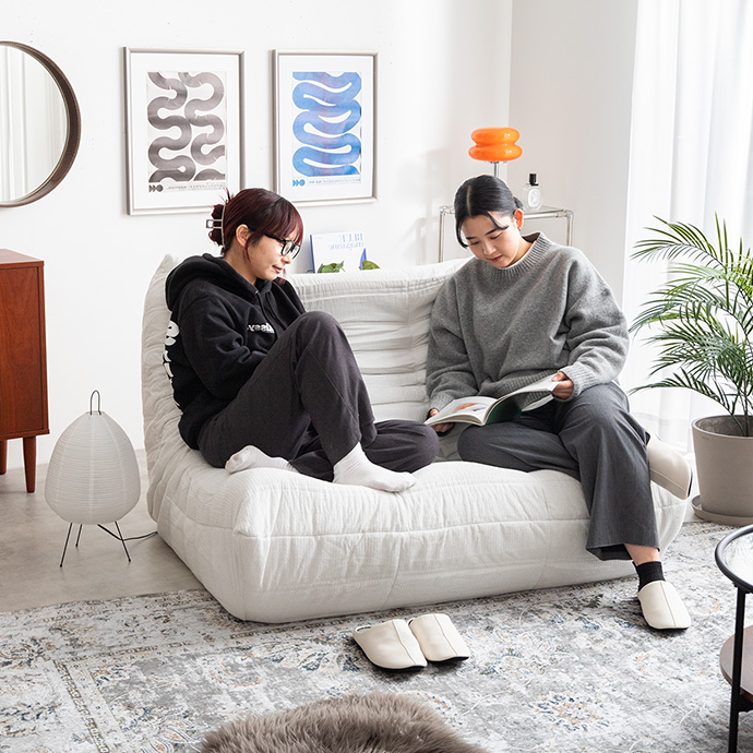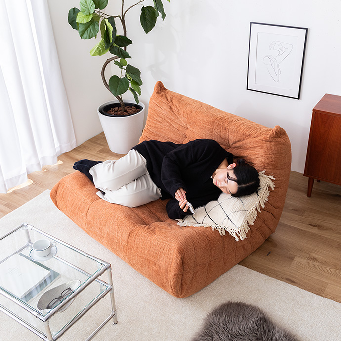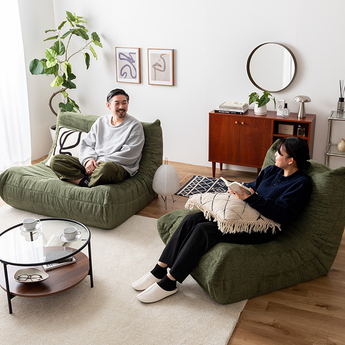 床に近い高さと体を包み込むフォルムで、自然と力が抜けてリラックスできる座り心地。映画鑑賞やスマホ時間など、お部屋時間をゆったり快適にしてくれます。