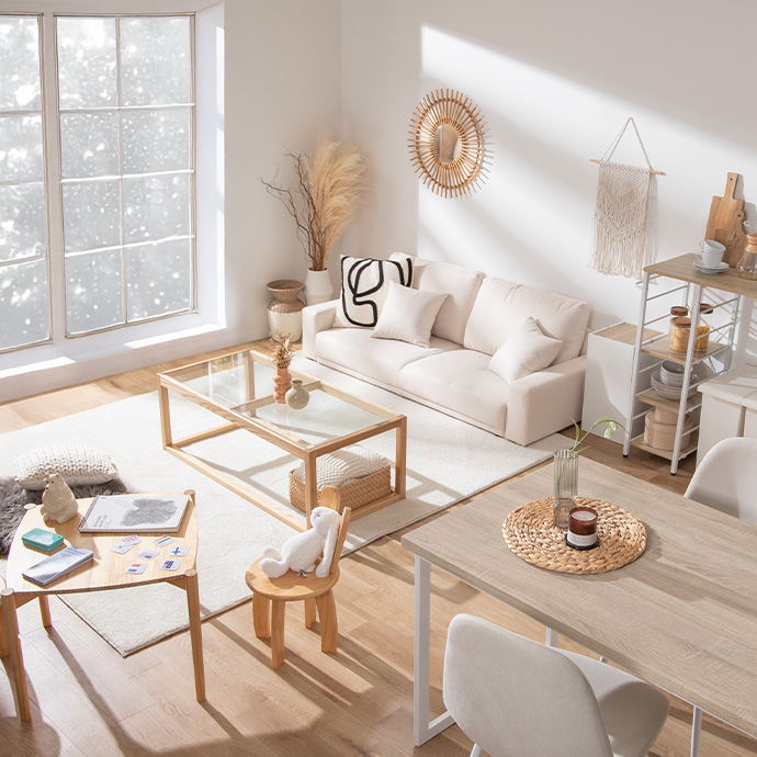 背面まで綺麗な仕上がりで、リビングとダイニングの間仕切りにもぴったり。お部屋に合わせた自由なレイアウトをお楽しみください。