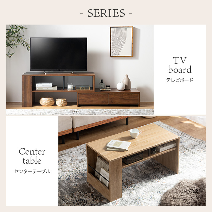 スタイルを自由に変更できるテレビボード。セパレート式で伸縮や角度調整もできるので、お部屋の間取りに合わせたスタイルに変更可能です。まるでオーダーメイド家具のように、自在なレイアウトがお楽しみいただけます。