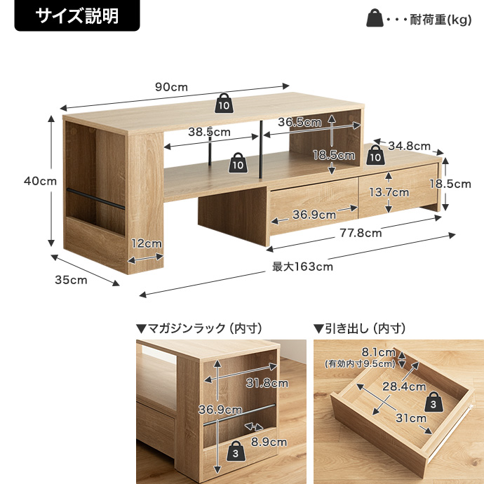 幅90cm〜163cm×奥行35cm×高さ40cm