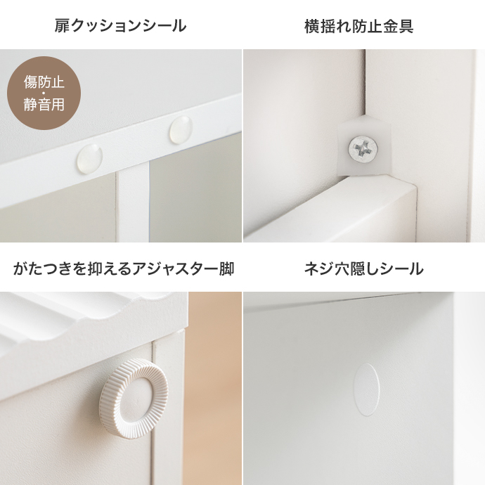 生活感溢れる物を隠して、お部屋をすっきりさせてくれる扉収納。大容量設計のため、ごちゃつきがちな小物類もこれ1台にまとめて、たっぷりしまうことが可能です。お部屋にすっきりとした印象を与えることができます。