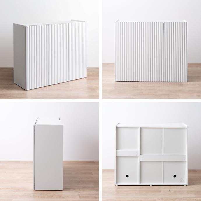 扉に施された丸みのある波型デザインは、光を受けて繊細な陰影を描き出し、ホワイトカラーに豊かな表情を加えます。静かに佇むその美しさが、お部屋に上品なアクセントを添える一台です。