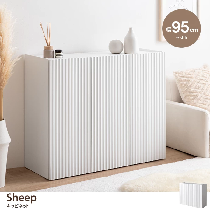 Sheep シープ 幅95 キャビネット 本棚 チェスト サイドボード シェルフ ブックシェルフ ディスプレイ 収納 おしゃれ おすすめ 安い 扉 棚 可動棚 扉収納 大容量 スリム 省スペース かわいい 一人暮らし 配線穴 薄型 漫画 コミック キッチン ルーター 玄関 リビング 波型 ナミナミ ワンルーム 隠す 高級感