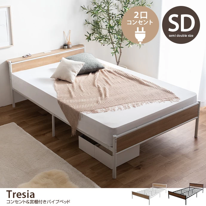 Tresia トレシア 幅120 セミダブルベッド パイプ ローベッド おしゃれ おすすめ 安い フレーム マットレス付き ヘッドボード 宮棚 コンセント ベッド下収納 コンパクト かわいい かっこいい 湿気対策 ポケットコイル 通気性 一人暮らし ワンルーム ポケットコイル 2段階 高さ調節 通気性