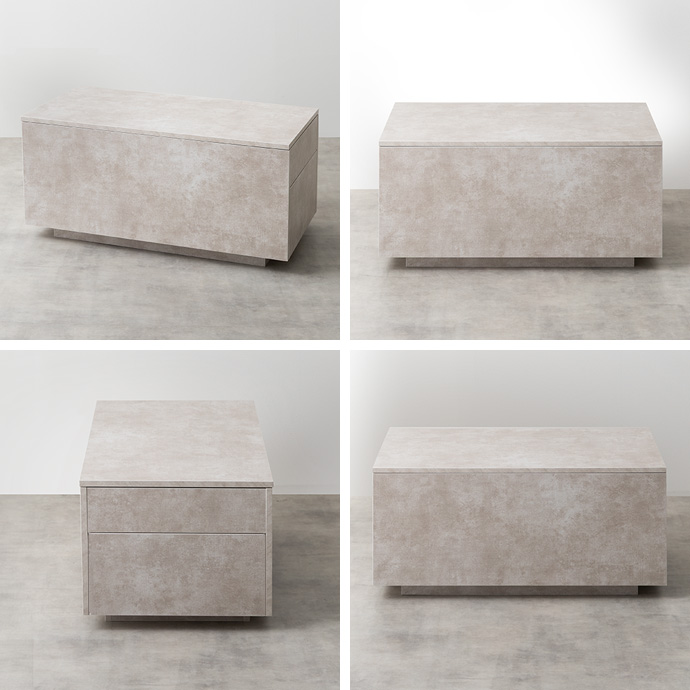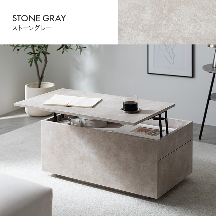 デザイン性と実用性を兼ね備えた昇降式センターテーブル。ノイズレスデザインとフロート脚仕様は、置くだけでお部屋を洗練された印象に仕上げます。昇降式天板に加え、2杯の大容量引き出しと天板下収納を搭載。散らかりがちな小物もまとめて収納でき、お部屋をすっきり整えます。