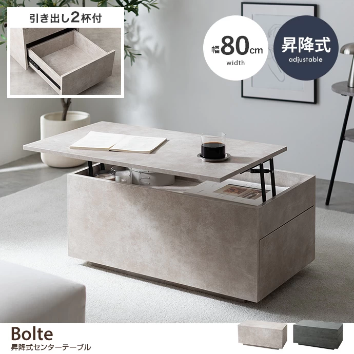 Bolte ボルテ 幅80 センターテーブル 昇降デスク 昇降式テーブル テーブル 机 ドレッサー パソコンデスク おしゃれ おすすめ 安い 収納 可動 ロー リフトアップ 引き出し リフティング 大容量 簡単 ストーン スタイリッシュ コンパクト 省スペース 石目調 コーヒー 一人暮らし ダイニング リビング テレワーク リモートワーク 作業台 在宅 デスクワーク
