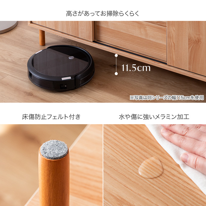 高さ70cmで、椅子に座ったりソファやベッドに寝転んだ状態でも、体に負担をかけない楽な姿勢をキープしてテレビ視聴が可能。リビングはもちろん、寝室のサブボードとしても最適な視聴角度を叶える一台です。