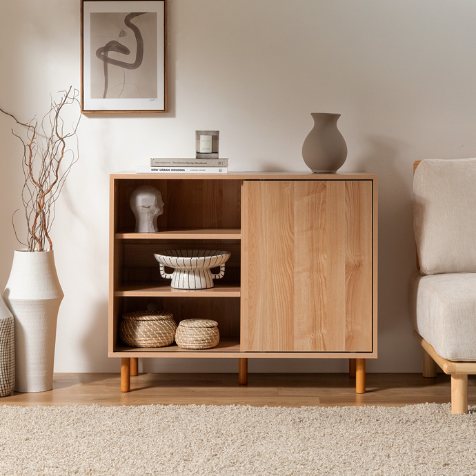 • 【幅80cm】Lykke オープン棚付きキャビネット