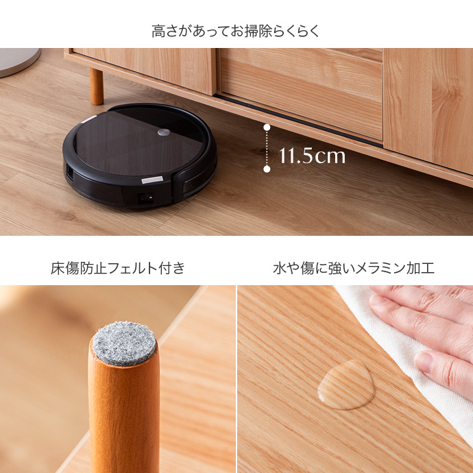 高さ70cmで、椅子に座ったりソファやベッドに寝転んだ状態でも、体に負担をかけない楽な姿勢をキープしてテレビ視聴が可能。リビングはもちろん、寝室のサブボードとしても最適な視聴角度を叶える一台です。