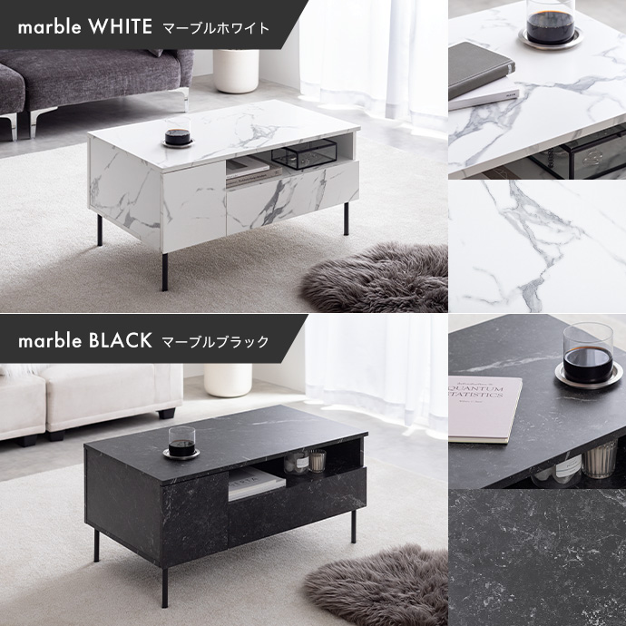 【幅80cm】大理石柄引き出し付きセンターテーブル
