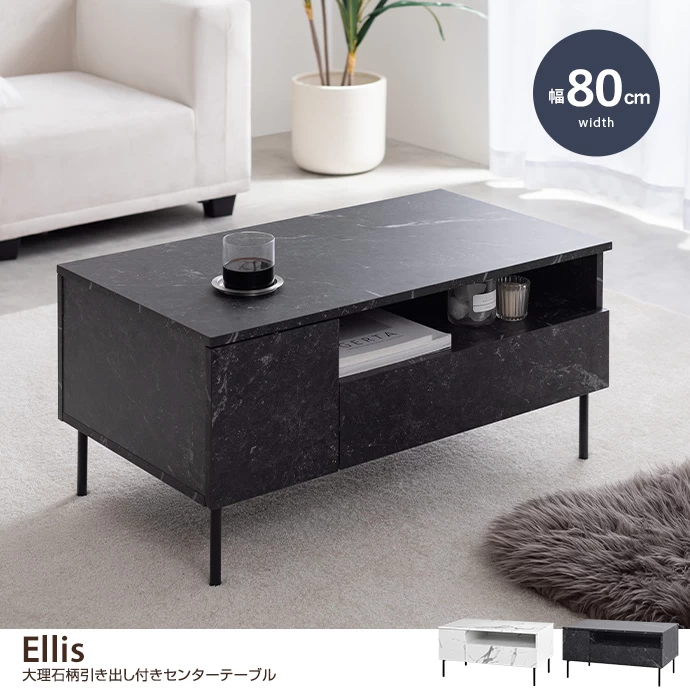 Ellis エリス 幅80 テーブル ローテーブル センターテーブル 机 大理石柄 おしゃれ おすすめ 安い コンパクト 省スペース 収納 ディスプレイ 引き出し 長方形 座卓 かっこいい モノトーン 一人暮らし リビング ダイニング ワンルーム ストーン調 石目調 高級感 ノイズレス