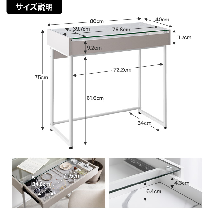| 商品名 | 【単品】幅80cm 引き出し付きガラス天板デスク |