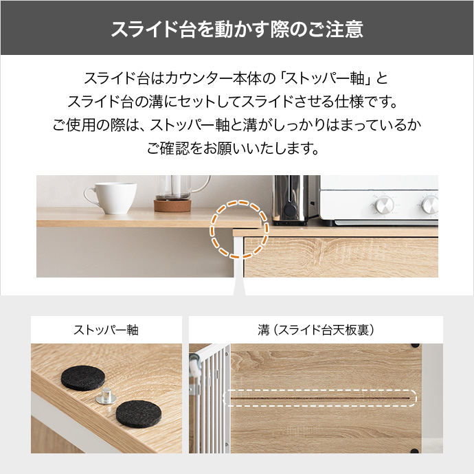 • 【幅100〜154.5cm】Cyrus 伸縮スライド台付きキッチンカウンター