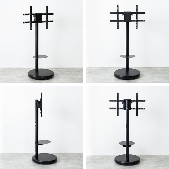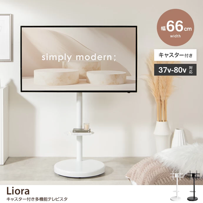 Liora リオラ 幅66 テレビスタンド テレビ台 ボード おしゃれ おすすめ 安い 壁寄せ tv 壁掛け キャスター付き 円形 丸型 収納付き 棚 コーナー ハイ ミドル 高さ調節 首振り 上下 左右 角度 90度回転 縦向き 有孔ボード付 37インチ 40 55 65 80 v 型 配線隠し コード 自立型 スタイリッシュ 軽量 一人暮らし ワンルーム 家族 ファミリー