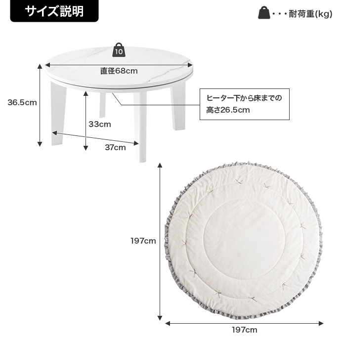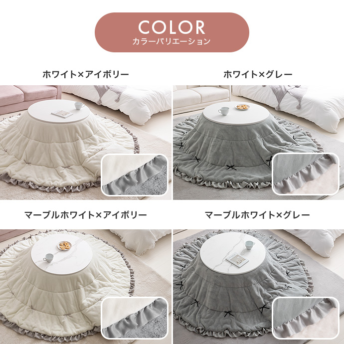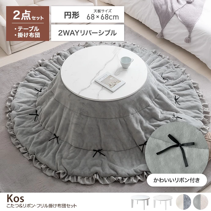 商品名 | 【円形:天板 68cm】Kos こたつ&リボン・フリル付き掛け布団2点セット |