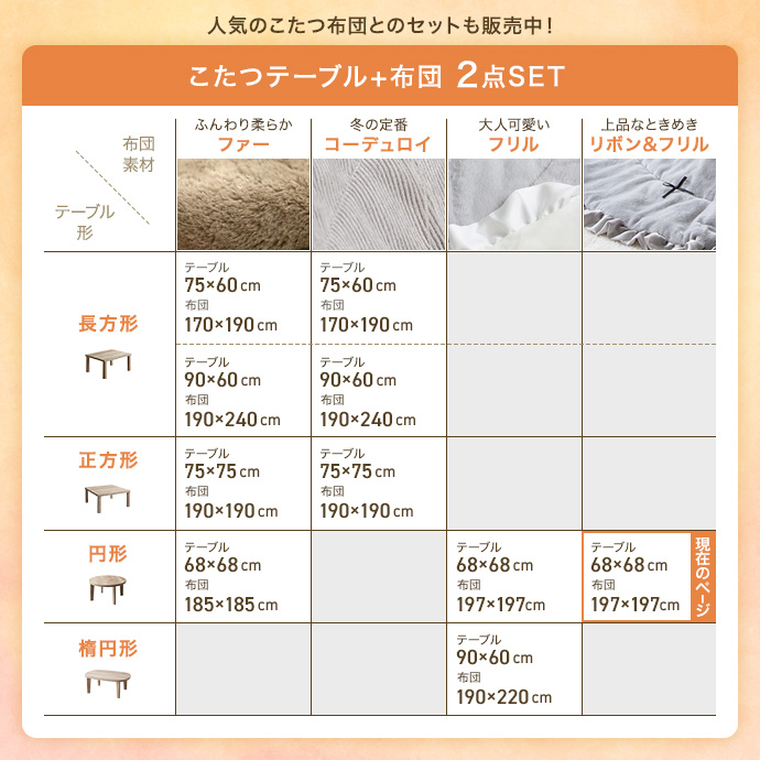 68×68 197×197 こたつ こたつテーブル コタツ こたつセット 円形 丸型 布団セット 洗える こたつ布団 リバーシブル おしゃれ おすすめ 安い こたつ掛け布団 薄手 省スペース 省エネ 節電 コンパクト 一人暮らし ワンルーム リボン フリル かわいい こたつ机 薄型ヒーター 洗濯機 丸洗い 毛布 上掛け 軽量
