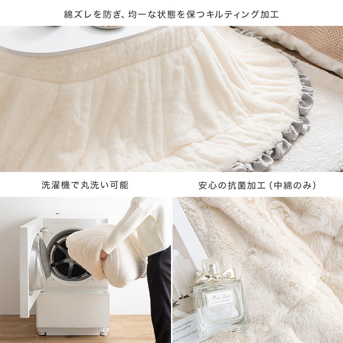 【円形:197cm】Chucola フリル付きリバーシブルファーこたつ布団