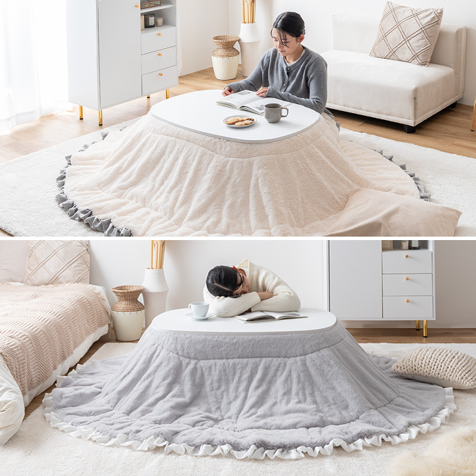 フリル付きこたつ布団で、大人可愛いお部屋づくり