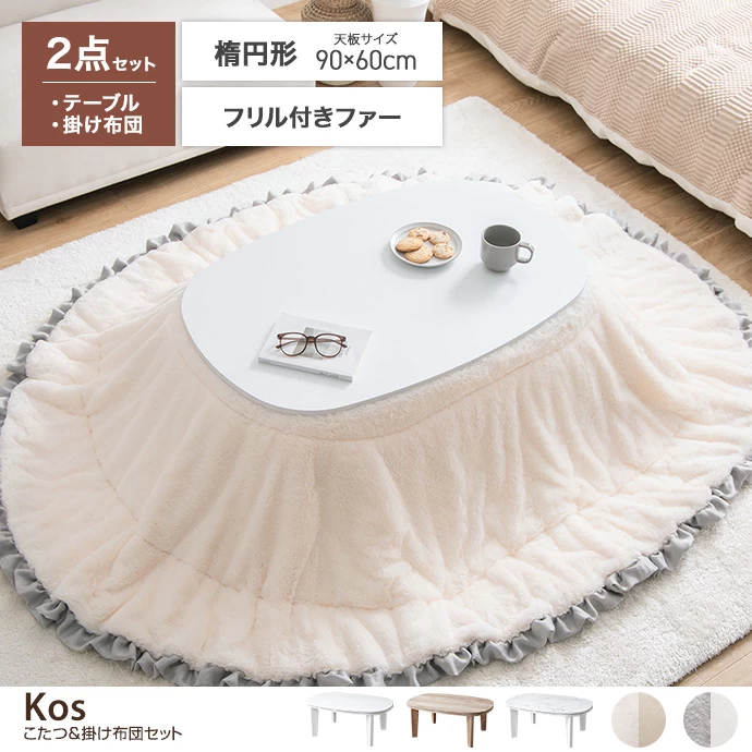• 【楕円形:天板 90cm×60cm】Kos こたつ&掛け布団2点セット