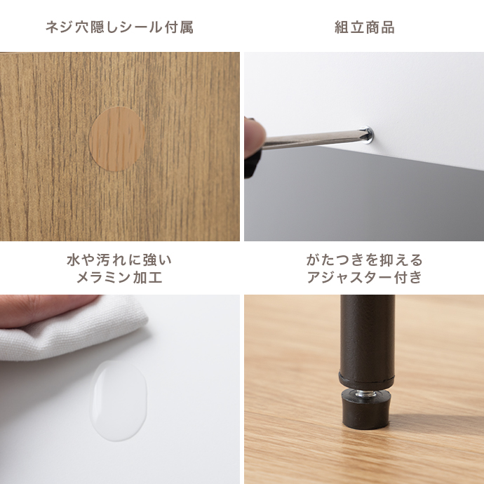 収納棚は左右どちらにも組み換え可能。お部屋のレイアウトや利き手に合わせて、使いやすい向きに自由にセットください。