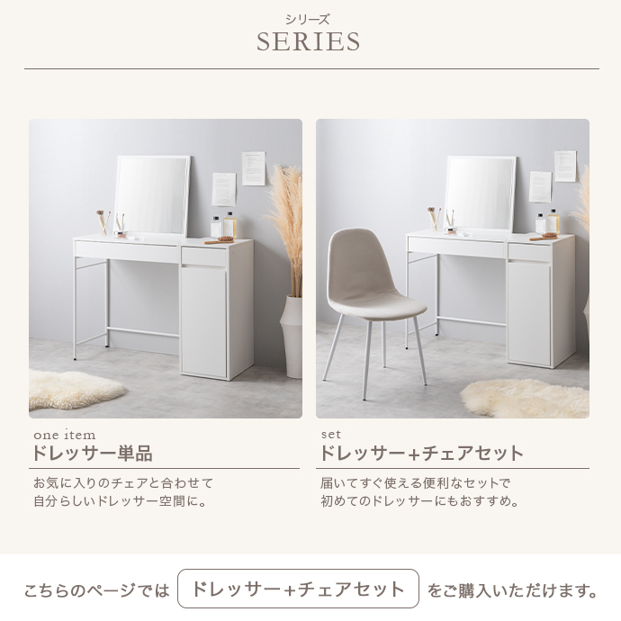 | 脚部 | 【ドレッサー】スチール(粉体塗装) 【チェア】アイアン(粉体塗装) |
