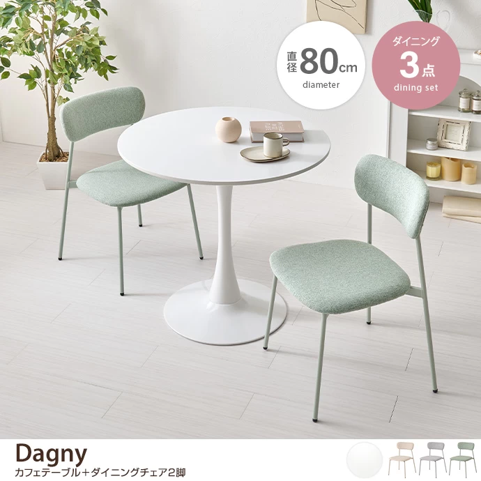 丸いフォルムが空間をやさしく見せるカフェテーブルと、くすみカラーがかわいいチェアを組み合わせたダイニングセット。角のない丸テーブルは視覚的な圧迫感が少なく、限られたスペースにもすっきりと置いていただけます。また座る位置を選ばないため、自由な距離感で心地よい会話が楽しめるのも魅力です。毎日の食卓がリラックスしたコミュニケーションの場となり、暮らしを上質に彩ります。